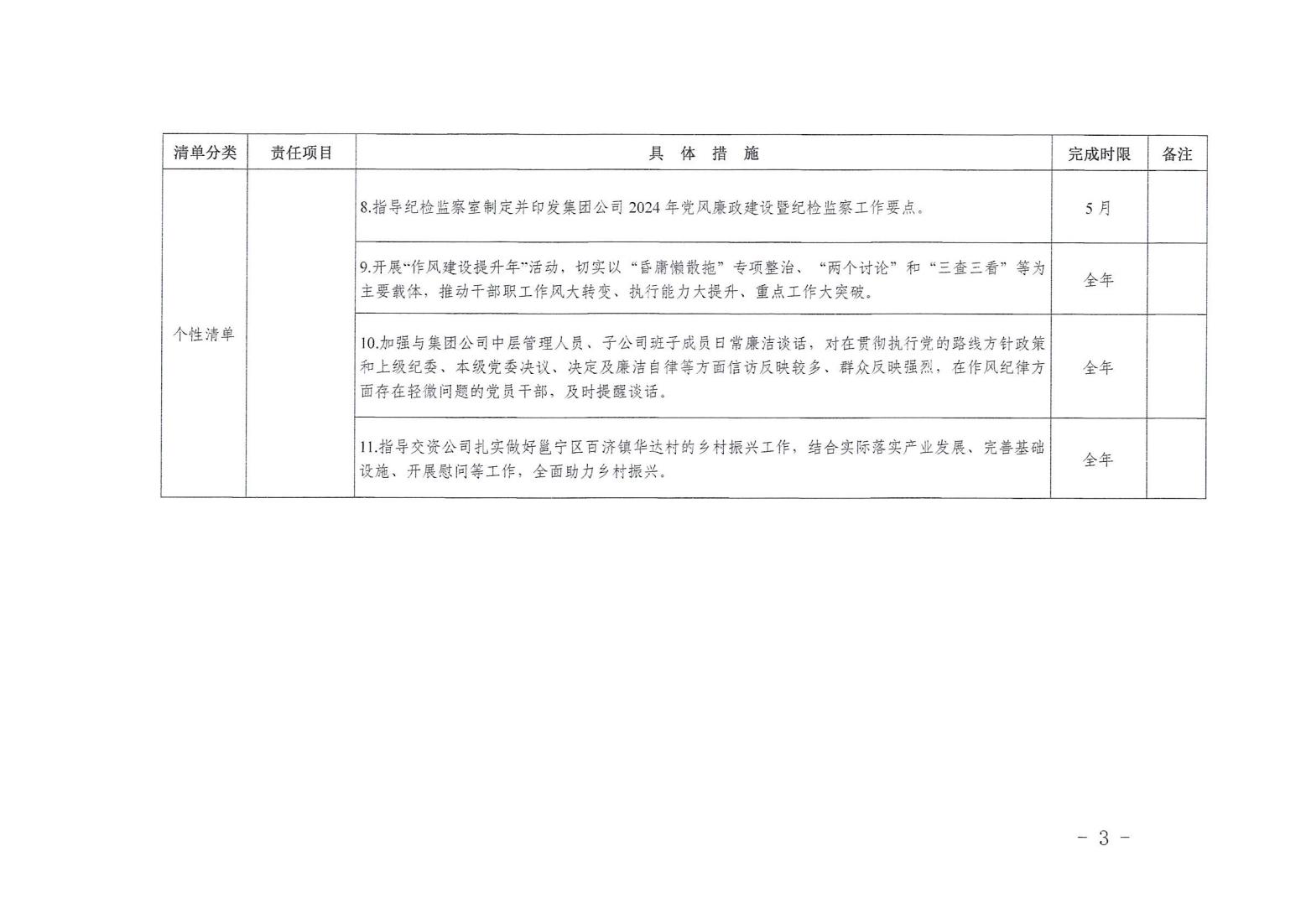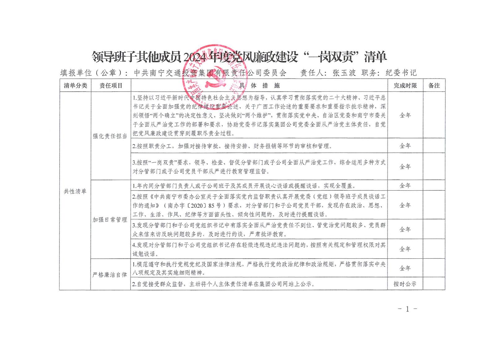 領導班子其他成員2024年度黨風廉政建設“一崗雙責”清單(二)