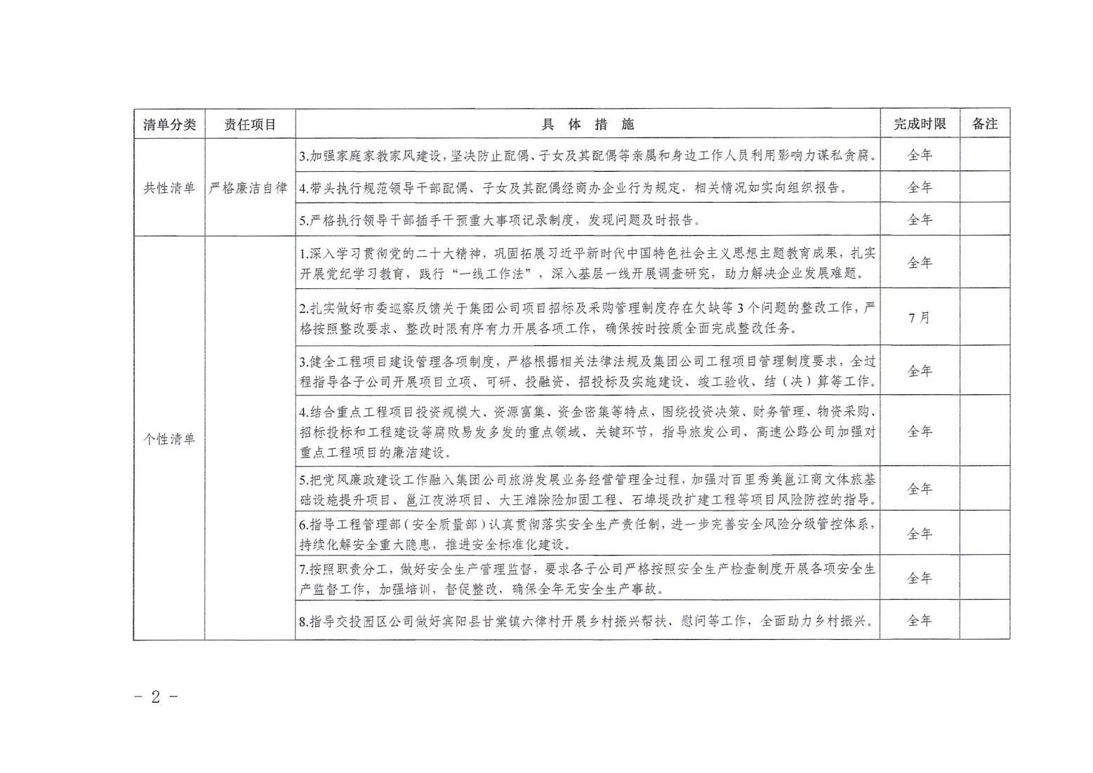 領(lǐng)導班子其他成員2024年度黨風廉政建設(shè)“一崗雙責”清單(二)