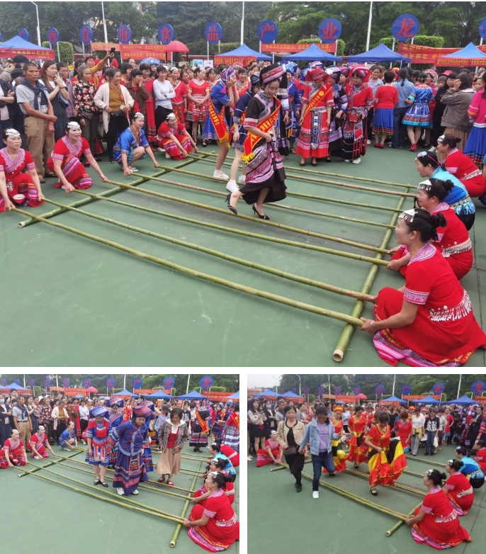 “跳竹竿”不僅是壯族人民的一種娛樂,也是壯族人民傳統(tǒng)文化的重要組成部分。它代表了壯族人民堅(jiān)韌不拔的精神和勇敢、樂觀、向上的生活態(tài)度。圖為集團(tuán)職工參與社區(qū)跳竹竿舞活動(dòng)