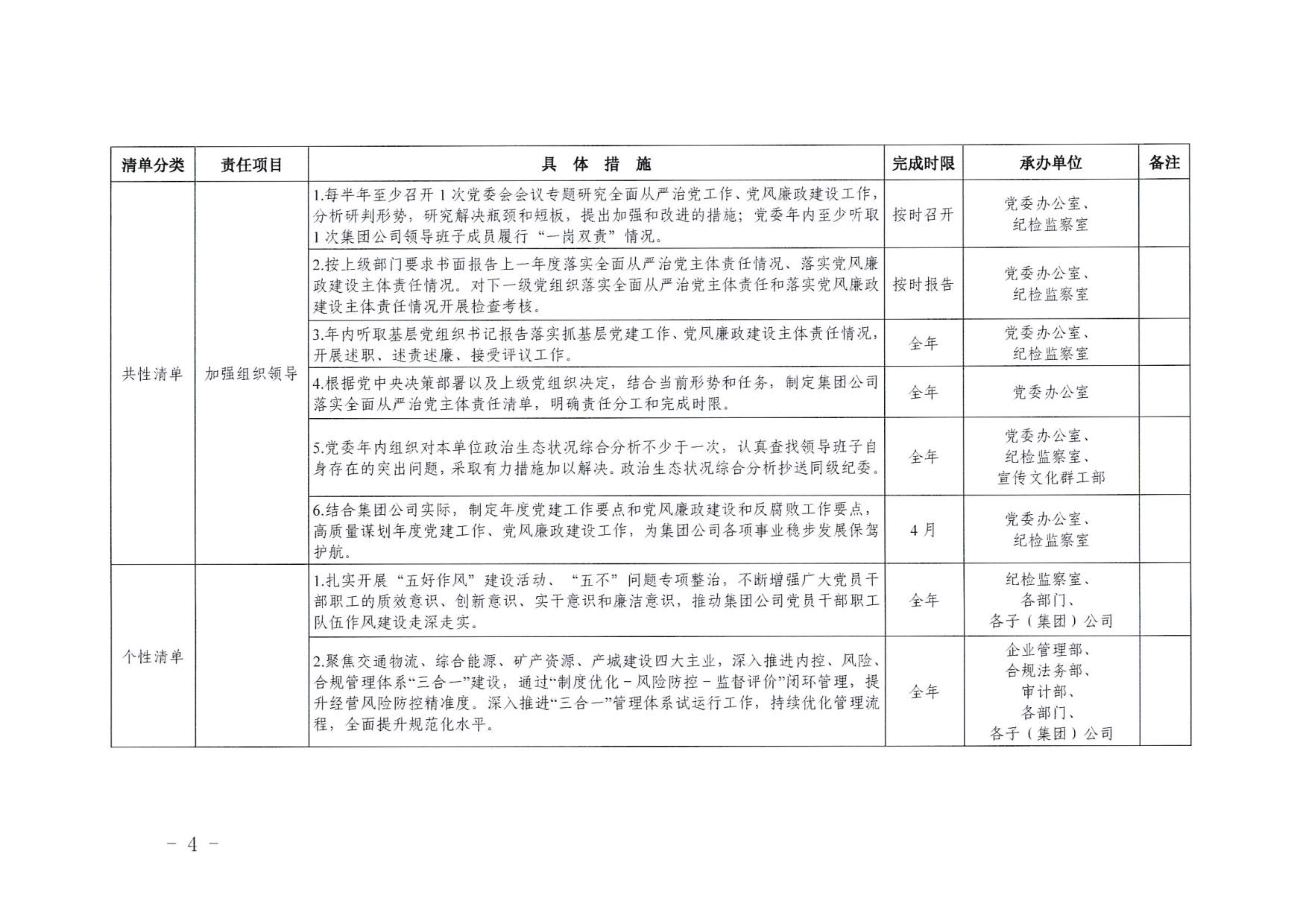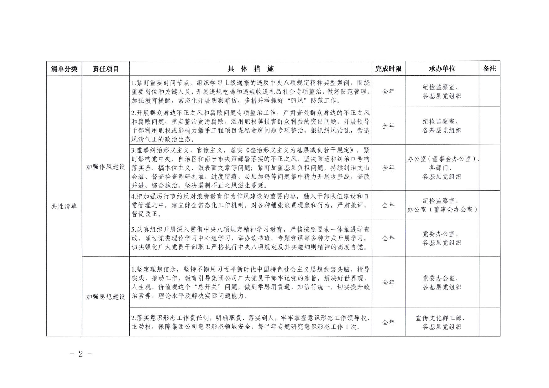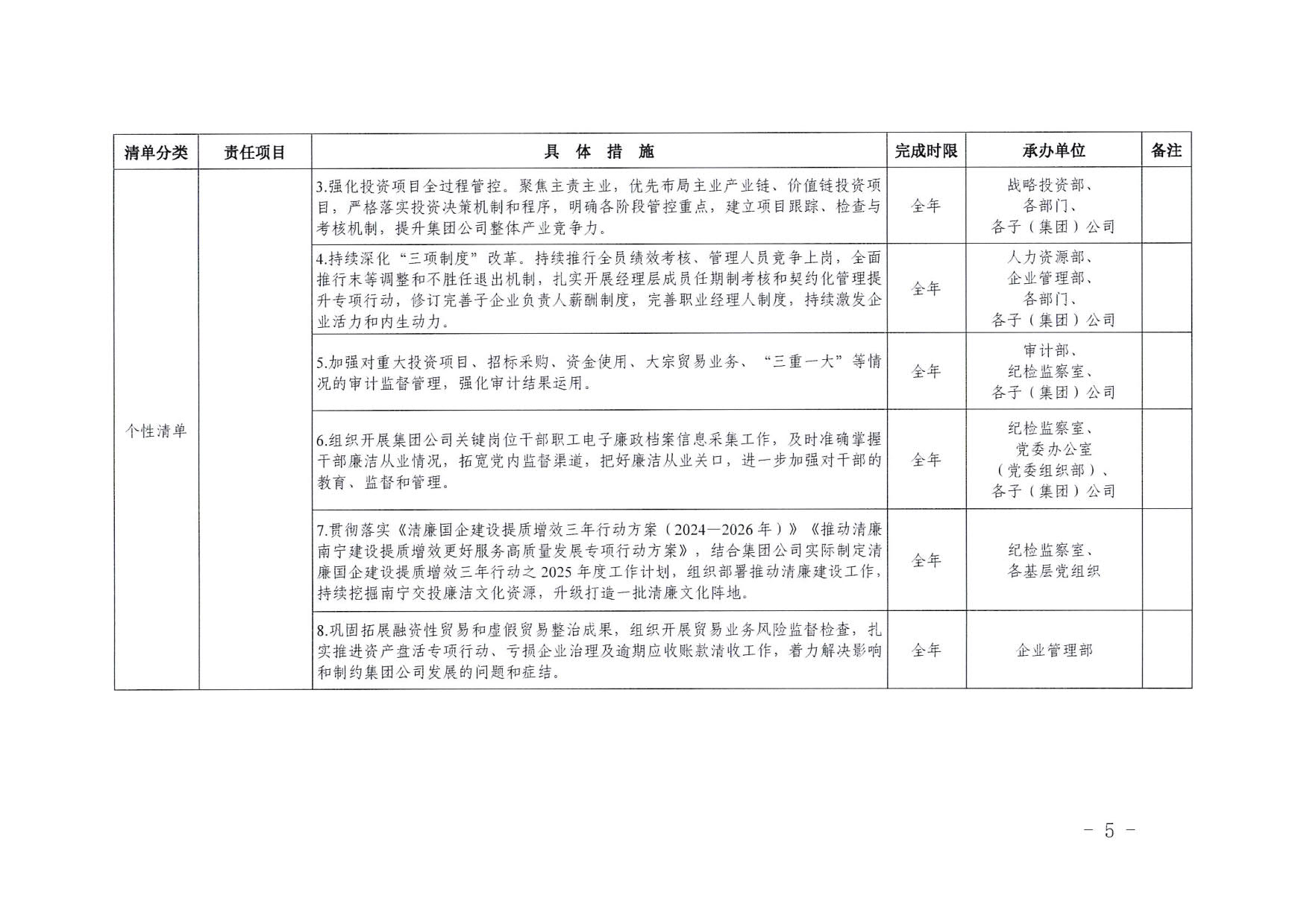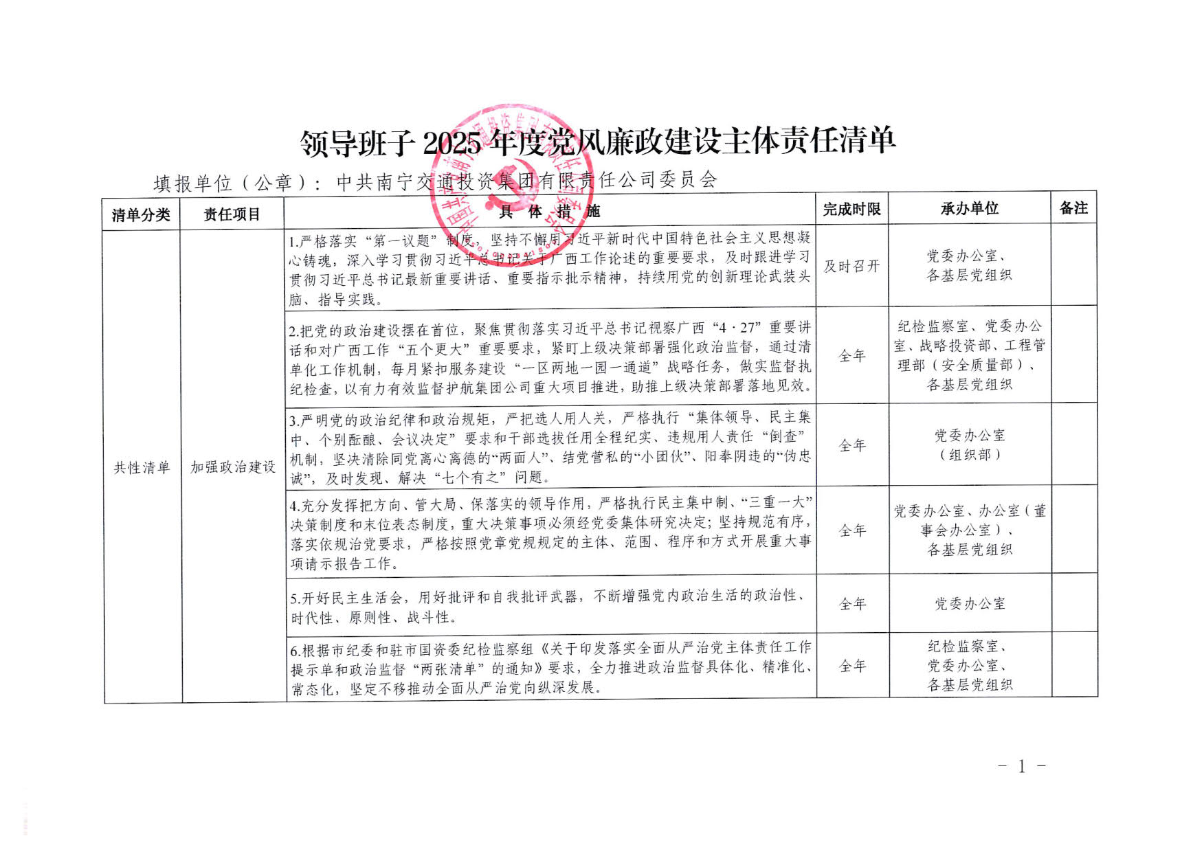 南寧交投集團領(lǐng)導班子2025年度黨風廉政建設(shè)主體責任清單