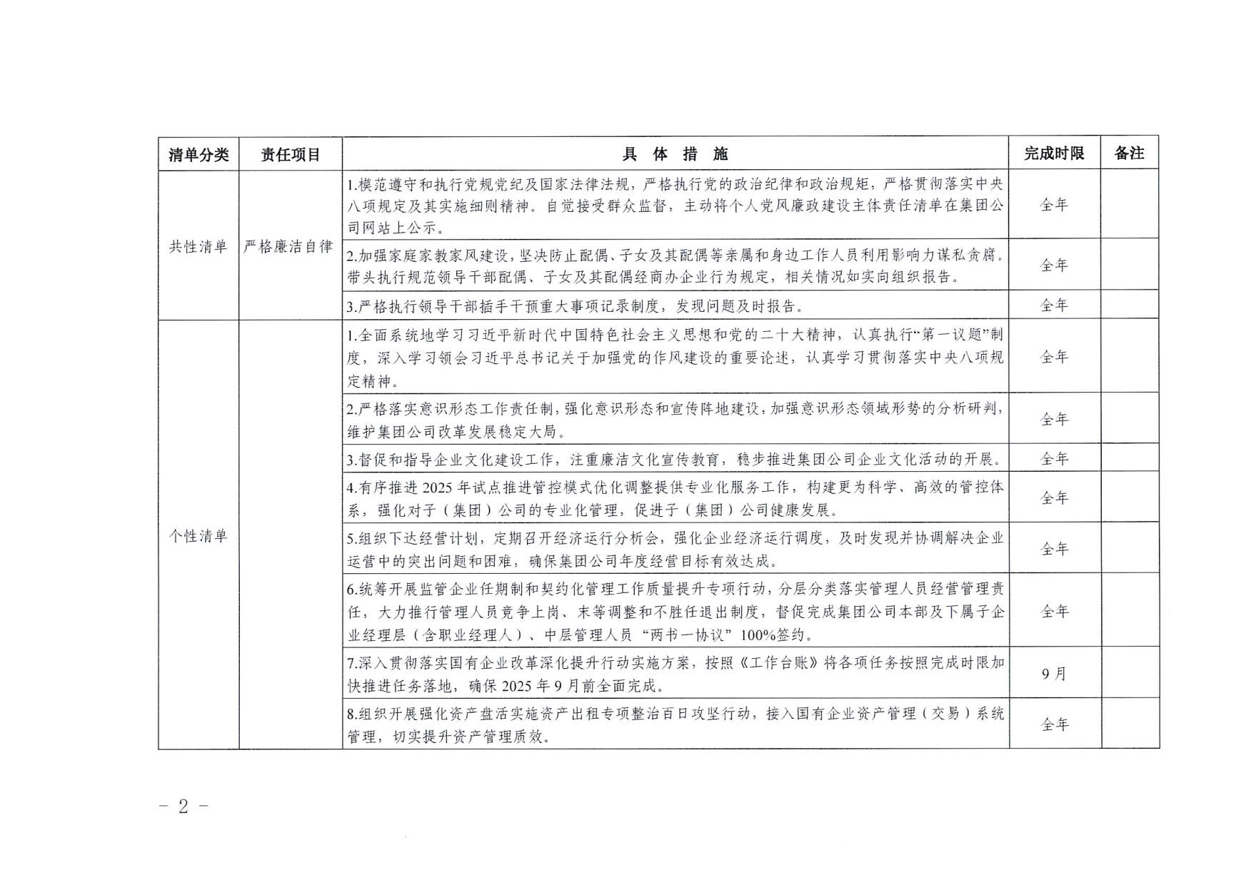 南寧交投集團領(lǐng)導(dǎo)班子其他成員2025年度黨風(fēng)廉政建設(shè)“一崗雙責(zé)”清單(一)