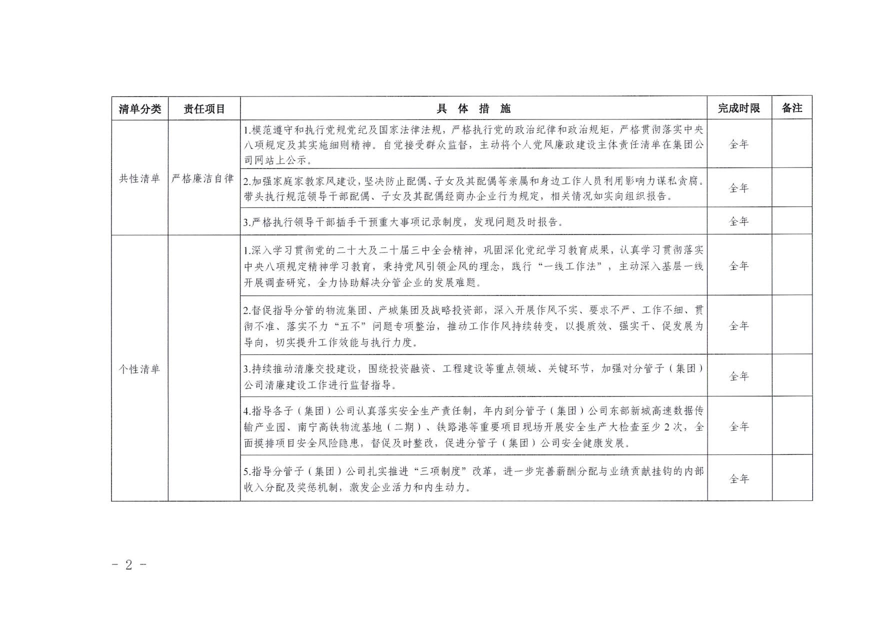 南寧交投集團領(lǐng)導(dǎo)班子其他成員2025年度黨風(fēng)廉政建設(shè)“一崗雙責(zé)”清單(五)