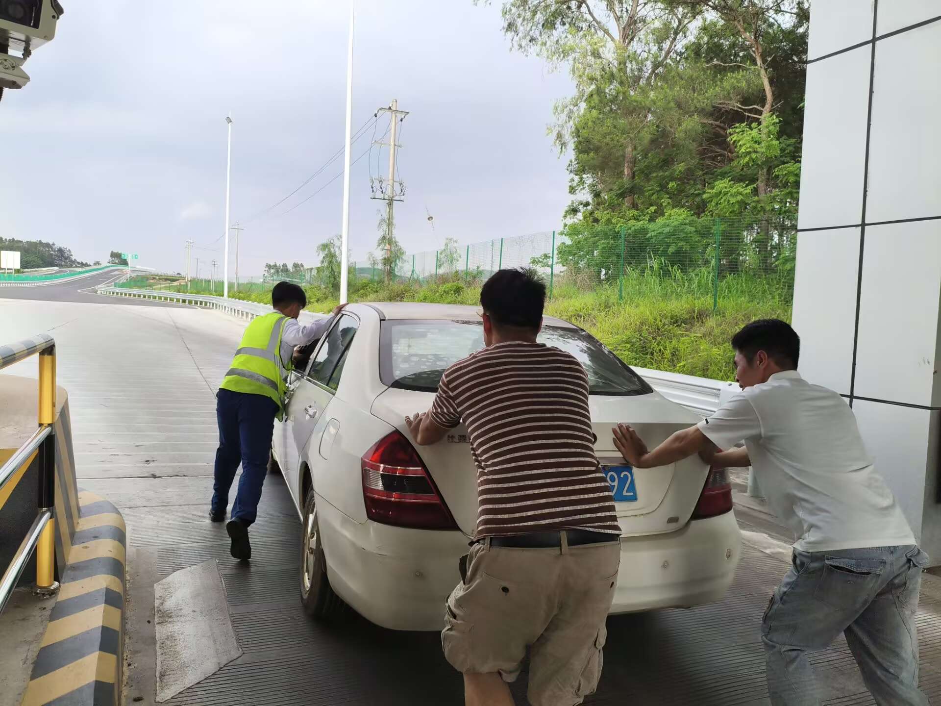 6月11日17時許,一輛白色轎車在途經(jīng)林橫高速陶圩收費(fèi)站完成繳費(fèi)后突發(fā)故障,引擎無法啟動。當(dāng)班收費(fèi)員蔣雨潔與覃新恒見狀立即上前,并在第一時間將情況上報(bào)監(jiān)控中心,隨后幫助司機(jī)將車輛推至外廣場安全區(qū)域,保障了收費(fèi)現(xiàn)場車輛的順暢通行。此外,收費(fèi)員還主動協(xié)助司機(jī)排查車輛故障。在收費(fèi)員的幫助下,車輛順利啟動,司機(jī)緊握收費(fèi)員的手連聲道謝:“十分感謝你們的幫助,為南寧高速的暖心服務(wù)點(diǎn)贊!”