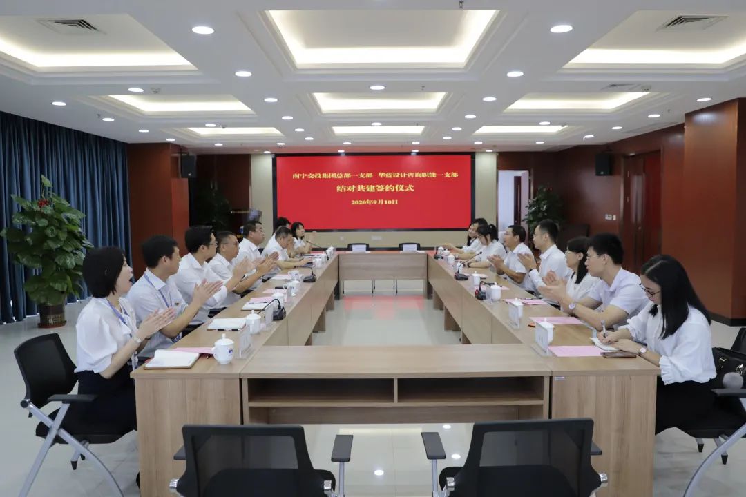 ——華藍(lán)設(shè)計(jì)咨詢職能一支部與南寧交投集團(tuán)總部一支部簽訂結(jié)對(duì)共建協(xié)議 為深入推進(jìn)基層黨組織建設(shè),充分利用結(jié)對(duì)共建方式,進(jìn)一步促進(jìn)基層黨建工作規(guī)范化,實(shí)現(xiàn)黨組織優(yōu)勢(shì)互補(bǔ),增強(qiáng)黨組織凝聚力、創(chuàng)造力和戰(zhàn)斗力,2020年9月10日,華藍(lán)設(shè)計(jì)咨詢職能一支部與南寧交投集團(tuán)總部一黨支部簽訂結(jié)對(duì)共建協(xié)議。這是兩家企業(yè)繼7月1日簽署戰(zhàn)略合作框架之后的又一件大事、喜事,標(biāo)志著南寧交投集團(tuán)與華藍(lán)設(shè)計(jì)公司的合作再上新臺(tái)階,發(fā)展又添新...