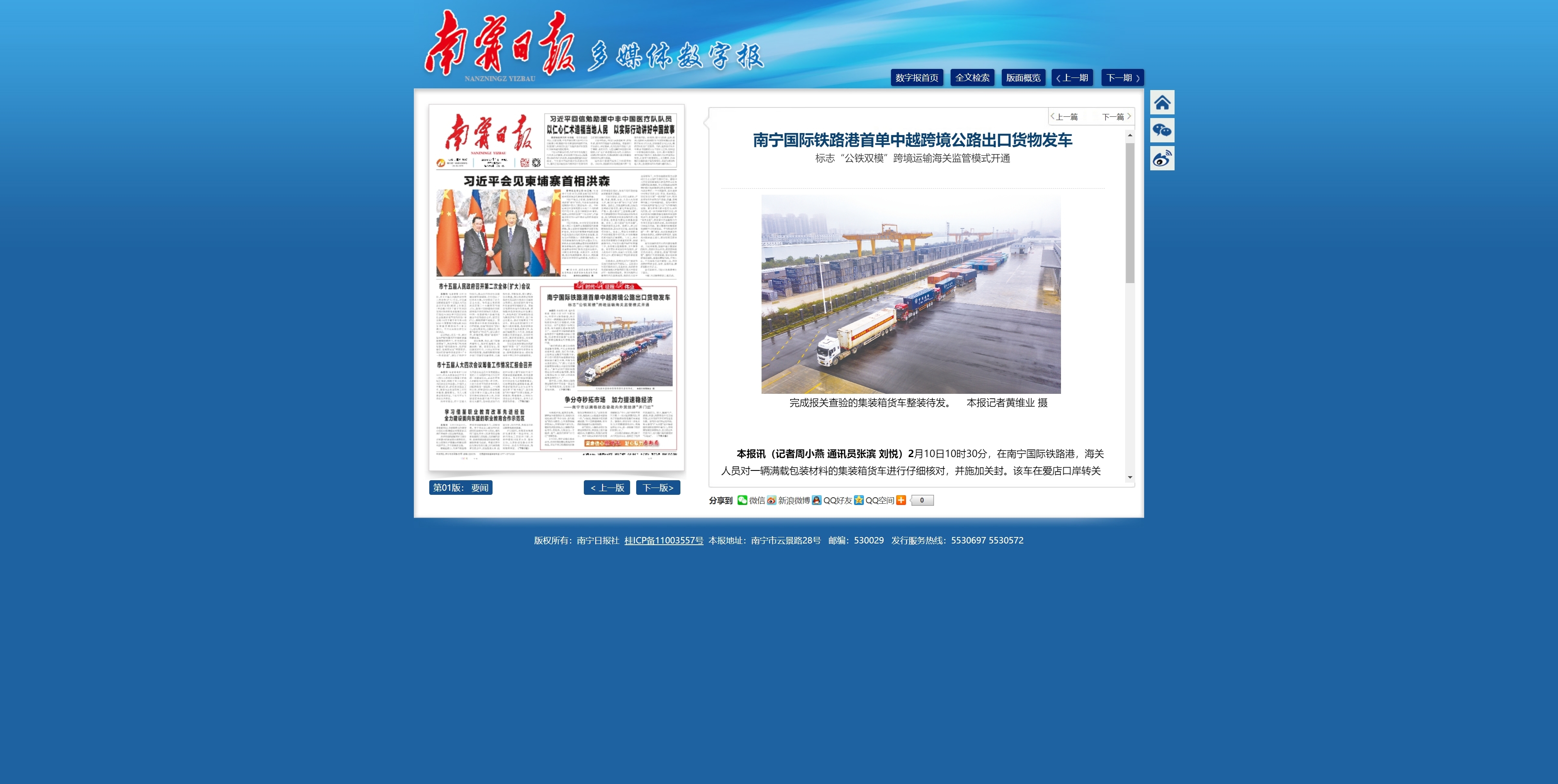 南寧國(guó)際鐵路港首單中越跨境公路出口貨物發(fā)車 標(biāo)志“公鐵雙?!笨缇尺\(yùn)輸海關(guān)監(jiān)管模式開通